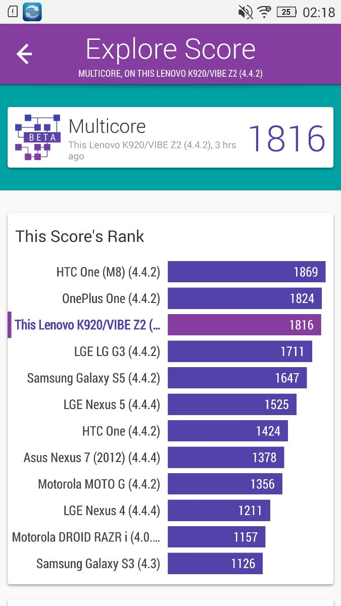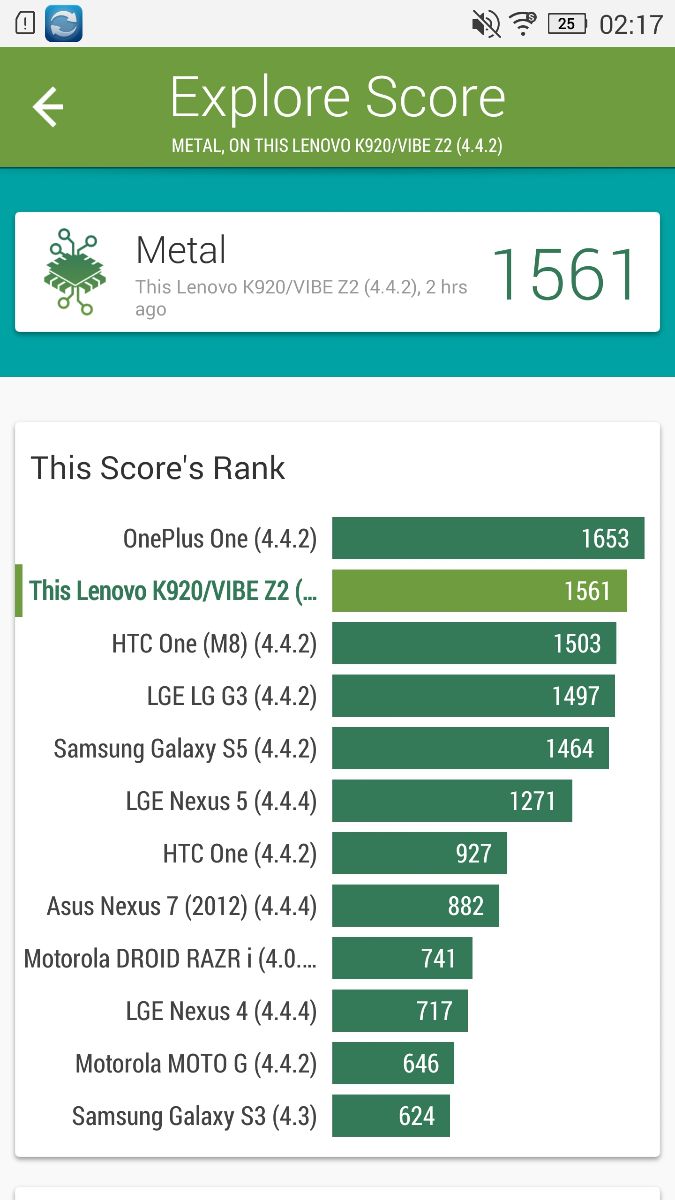 Další disciplína ve které má již dle papírových parametrů Vibe Z2 Pro jasně navrch. Může za to především výkonný 4 jádrový procesor Qualcomm Snapdragon 801, taktovaný na 2,5 GHz. Tomu navíc sekundují 3 GB operační paměti. Oproti tomu Vibe Z2 je vybaven „pouze“ Snapdragonem 410 se čtyřmi jádry o taktu 1,2 GHz a 2 GB RAM. Propastný rozdíl mezi těmito konfiguracemi ukazují výsledky bechmarků: