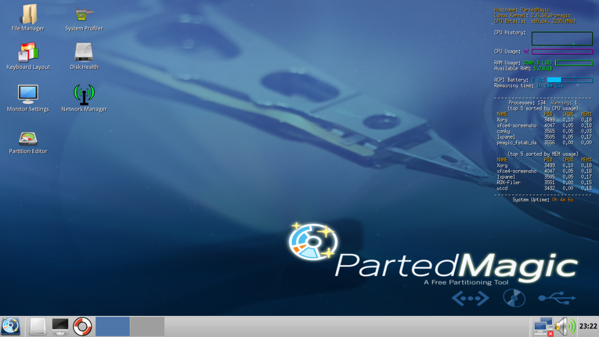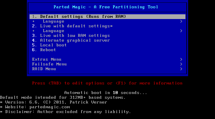- Spustíme PartedMagic -> default setting