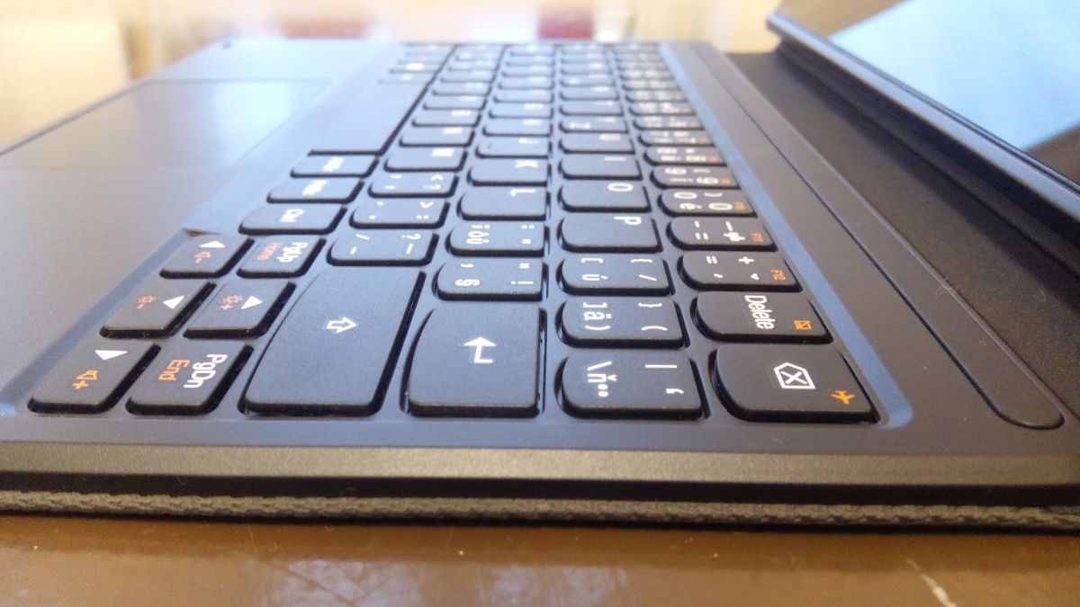 Společně s tabletem k nám do redakce dorazilo i efektní pogumované pouzdro se zabudovanou klávesnicí a stojanem. Samozřejmě to není ideální řešení pro častou práci na klíně, ale ve škole jsem si psaní celkem užil. Sice má trošku jiné rozložení kláves než můj primární thinkpad a díky svým rozměrům také menší klávesy, ale svůj účel splní a s trochou praxe můžete psát stejně rychle jako na plnohodnotné klávesnici. Jediné co mě zamrzelo, byla absence kláves F1. Lze je vyvolávat pomocí stisknuté klávesy F a příslušné klávesy viz snímek níže. Naopak velmi mě potěšil clickpad, který má příjemný a znatelný stisk. Proklik vydává velice hutný hluboký zvuk a dává najevo, že je opravdu dobře zpracovaný a snad i něco vydrží.