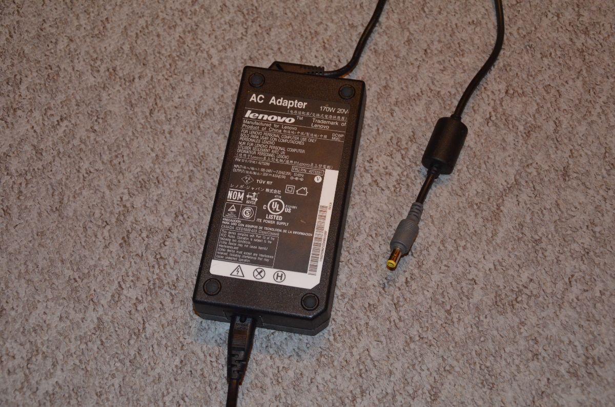 „Pořádný notebook vyžaduje pořádné napájení,“dalo by se říci. ThinkPad W700ds tuto větu dovedl do extrému. 170 W napájecí adaptér lze (podobně jako notebook samotný) přirovnat k pěkné cihle. S rozměry zhruba čtyř standardních 90 W adaptérů a poměrně vysokou hmotností se nejedná zrovna o cestovní nabíječku (viz. obrázek).