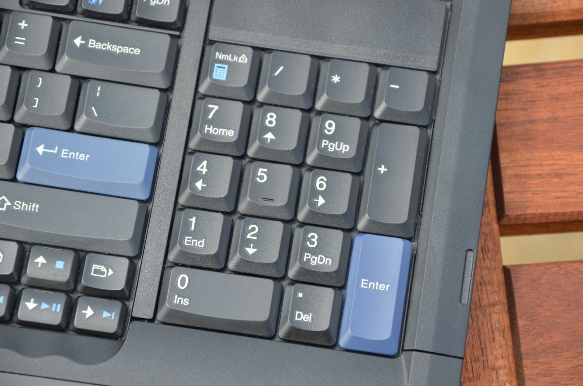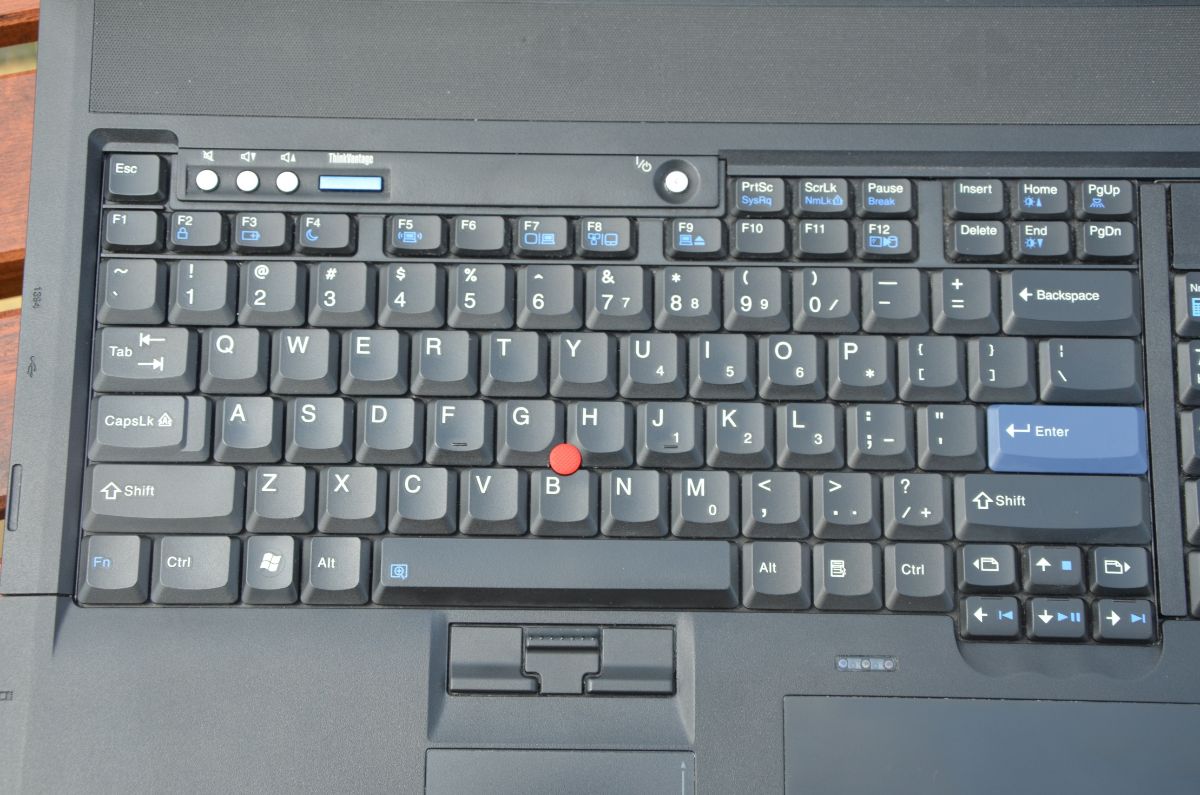 V notebooku se nachází klasická (geniální) sedmiřadá klávesnice. Její výhody jsou jasné: přítomnost všech potřebných kláves a nejlepší možné rozložení (komu by vadilo jiné umístění kláves ctrl a fn, může si je přes BIOS prohodit). Psaní na ní mi nedělalo žádný problém, za mnoho let byla dovedena téměř k dokonalosti. Oceňuji ideální tuhost, výšku zdvihu a měkký doraz. Klasickým znakem těchto klávesnic je ale mírně vyšší hlučnost psaní. V tiché místnosti nikdo vaše psaní na klávesnici nepřeslechne.
