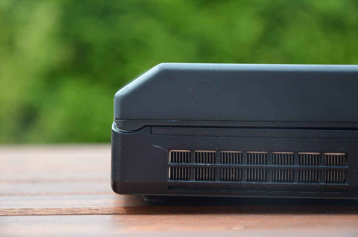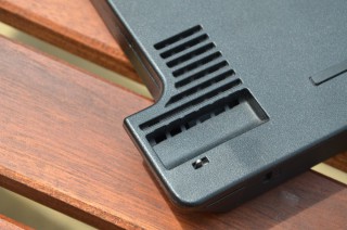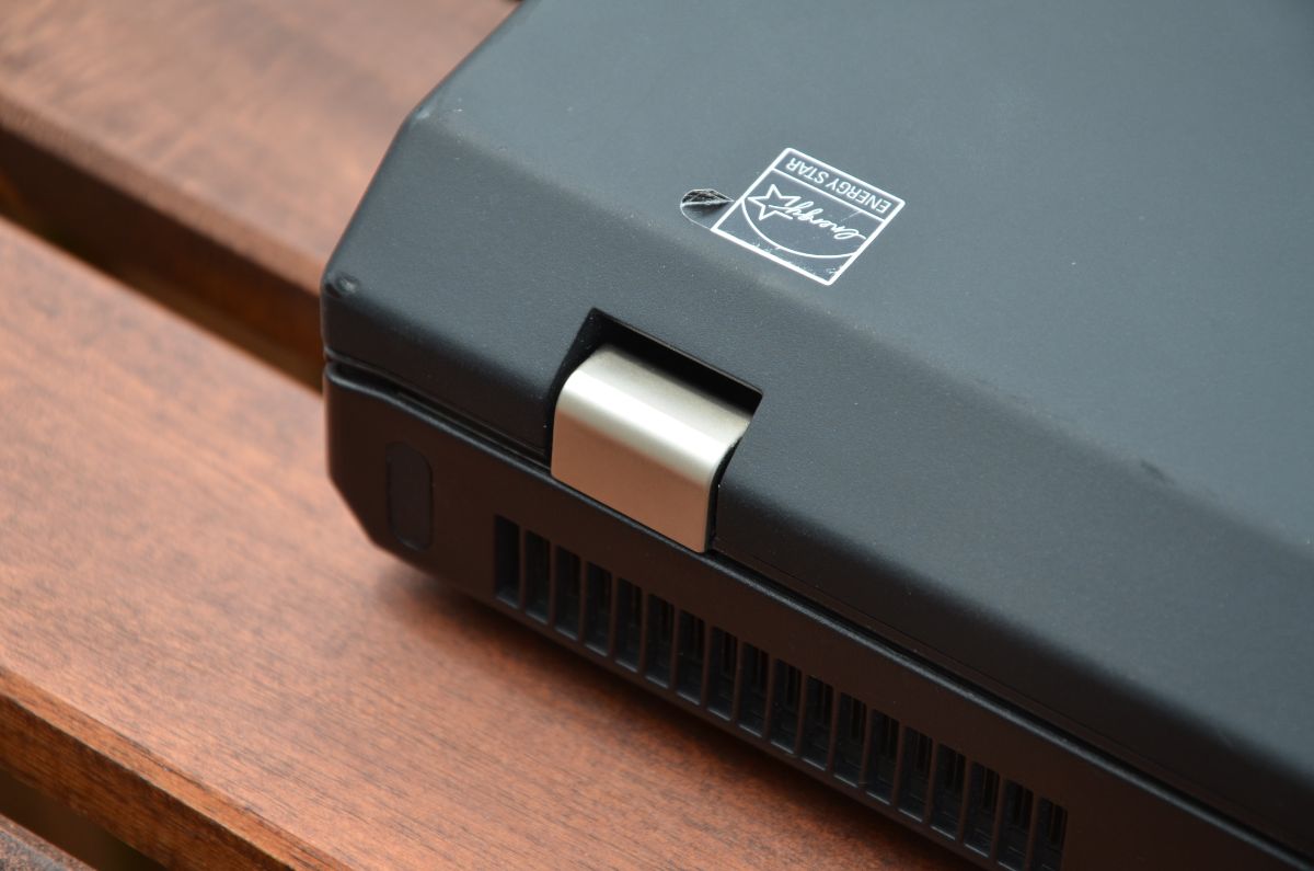 Baterie se nachází poněkud netradičně zepředu na spodní straně notebooku. Testovaný kus byl vybaven devítičlánkovým akumulátorem od firmy Sanyo. Z původních 85 Wh udrží baterie po pěti letech provozu a 130 cyklech „pouhých“ 38 Wh. Taková kapacita pak stačí asi na jednu hodinu méně náročného provozu. U notebooku tohoto typu se zkrátka na výdrž v terénu moc nehraje, vysokou spotřebu tedy neberu jako mínus – čtyřjádrový procesor a výkonná grafická karta nejsou zrovna etalony nízké energetické náročnosti.