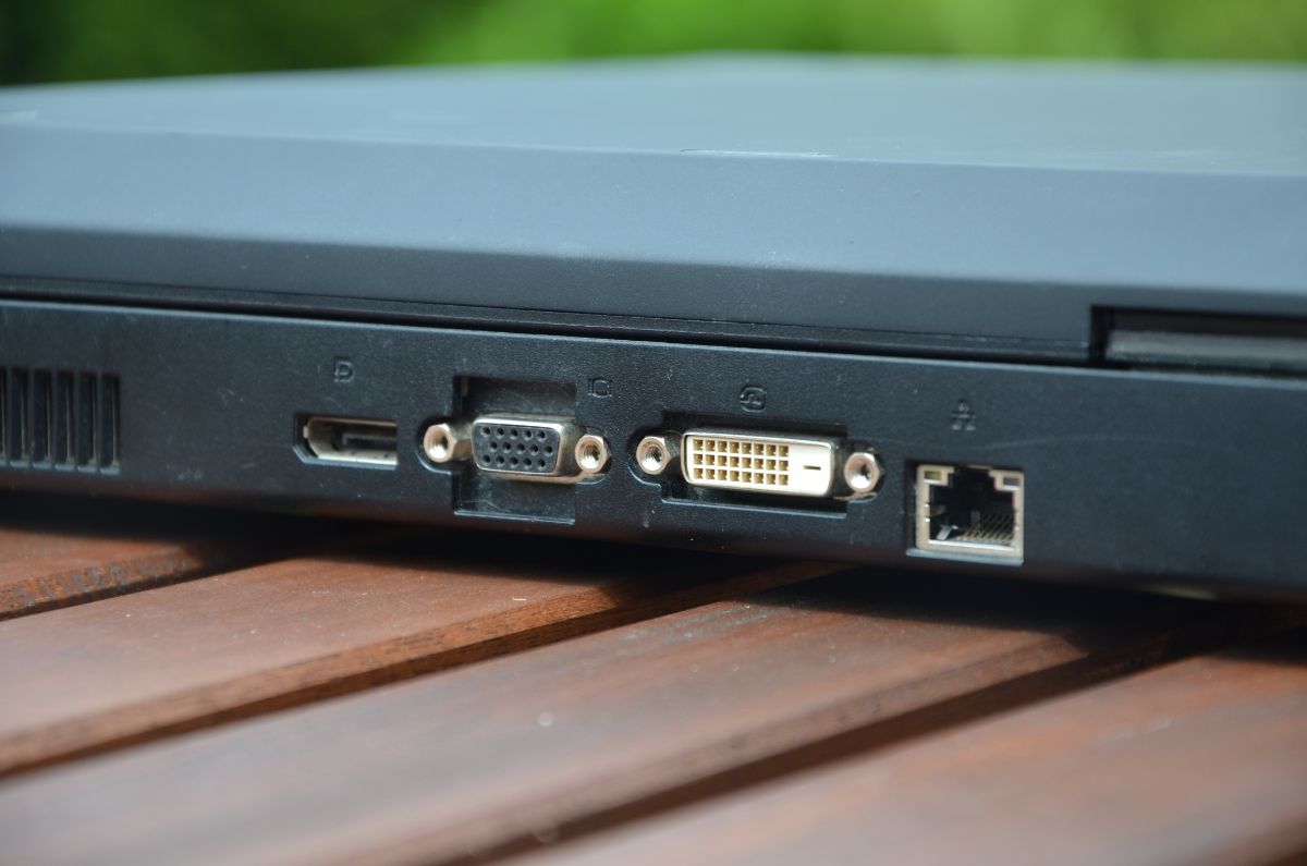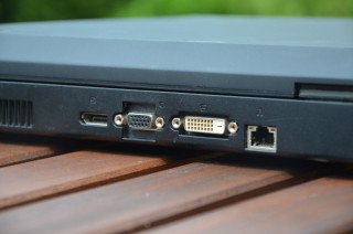- zadní strana: DisplayPort, VGA, DVI, RJ-45 (ethernet) a nabíjecí konektor (nestandardní typ)