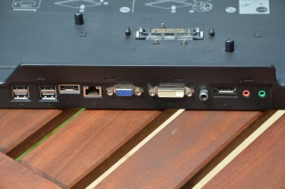 Konektorová výbava z větší části kopíruje zadní stranu laptopu. Nachází se zde 4x USB 2.0, eSATA, RJ-45 (ethernet), VGA, DVI, S/PDIF, DisplayPort a dvojice 3,5 mm jack.