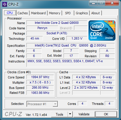 - procesor: Intel Core 2 Quad Q9000 (4x 2.0 GHz, 45 W TDP)