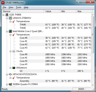 Větráčky mají snesitelný zvuk. Ačkoliv jsou oba během provozu spuštěné bez zastavení, při běžném zatížení (internetový prohlížeč, multimediální přehrávač či kancelářská práce) nijak neruší. Dají se poslouchat i při nejvyšší zátěži. Ačkoliv jsou v tu chvíli docela hlasité, nepískají (viz. model X220), ale hučí. Vůči chlazení nemám žádné výtky.