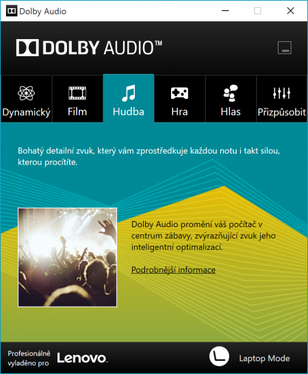 Kvalitní obraz tak nějak k prémiové Yoze už pasuje, Yoga 900 proto z klubu kvalitních zvukových orgií nemohla odejít. Ve svém tenoučkém těle nabídne dvojici reproduktorů známé značky JBL, které jsou navíc podpořené rozšířením Dolby Home Theatre (a novými stylovými mřížkami z kovu). Přidejte k tomu ještě funkci změny nastavení zvuku v závislosti na režimu a už snad uživateli nemůže nic chybět. A je tomu skutečně tak. Zvuk Yogy 900 mi – zvlášť při uvážení rozměrů zařízení – přišel výborný. Ano, basy jako ze subwooferu nečekejte, ale na prokreslený a dostatečně hlasitý zvuk se můžete spolehnout. Já osobně si Yogu 900 rád poslechnu. Když navíc překlopíte displej do jiného režimu, změní se také naladění zvuku, protože systém počítá s tím, kudy zvuk proudí (v režimu notebooku se díky umístění reproduktorů na spodní straně odráží od podložky a rezonuje také v těle, v jiných režimech směřuje více do prostoru, a tak je např. ostřejší). Vedle toho je ještě možné měnit režimy ekvalizéru (film, hudba, hra, hlas, dynamický a ruční), osobně jsem nepotřeboval jiný než hudba.