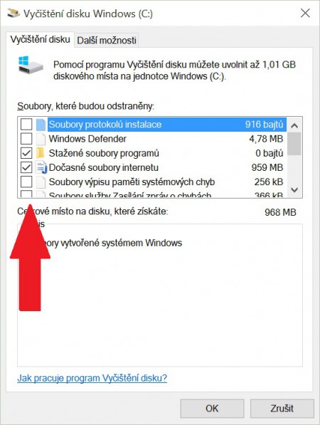 Na zařízení stačí stisknout v dolní liště ikonu lupy a napsat „Vyčištění“. Automaticky se v nabídce objeví možnost „Vyčištění disku“. Po kliknutí na tuto možnost se objeví okno, ve kterém zvolíte „Vyčistit systémové soubory“ a poté zaškrtněte „Předchozí verze Windows“ a potvrďte tlačítkem „OK“.