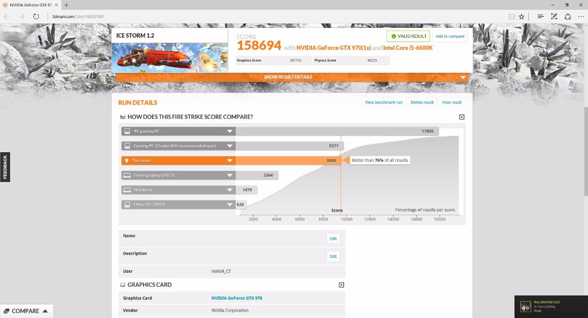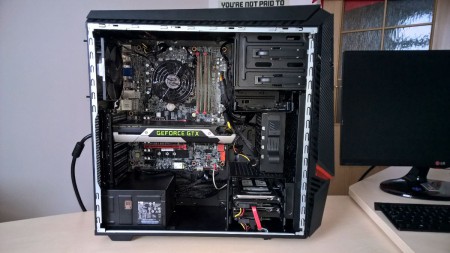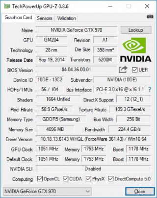 Jako grafickou kartu zde nalezneme velice výkonnou NVIDIA GeForce GTX 970 s vlastní 4GB grafickou pamětí a 256bit sběrnicí. No… ono je to v podstatě s tou grafickou paměti trošku jinak, než uvádí specifikace od společnosti NVIDIA. Koho minula aféra s 3,5GB grafickou pamětí, doporučuji jedno vynikající video, které zhruba shrne o co vlastně jde – https://www.youtube.com/watch?v=Zb8WQ7atNkY. Pro ty kteří tak dobře nevládnou anglickému jazyku mohu ve zkratce říct, že grafická karta nabídne 3,5GB operační paměti připojené na sběrnici s plnou šířkou, a posledních 512MB je vzhledem k vypnutým rasterizačním jednotkám vedena alternativním spojem, který komunikaci značně zpomaluje. Pokud tedy zařízení, respektive grafickou paměti vytížíte na více jak 3,5GB dojde k citelnému zpomalení. V reálu jsem ovšem ani na nejvyšší nastavení této hodnoty nedosáhl. Přesto všechno mohu s klidným srdcem uvést, že je tato grafická karta famózní. Nabídne dostatek výkonu pro plynulé hraní naprosto každé hry. Nebýt této pihy na kráse, sám bych si tuto grafickou kartu koupil. Mě teď nezbývá nic jiného než čekat na novou řadu, která by na trh měla dorazit zhruba v půlce tohoto roku.