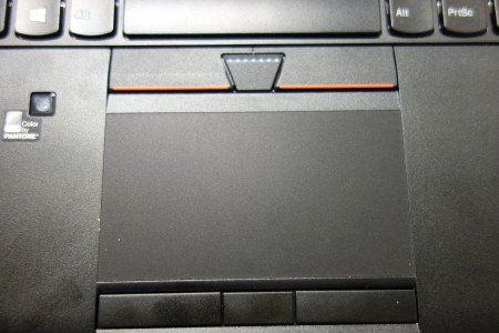 O něco málo zajímavější je touchpad. Touchpad je opravdu touchpad (nikoliv clickpad). Celkově se mi používá poměrně dobře až na okraje, které jsou v jedné rovině s palmrestem – prst pak z touchpadu velmi snadno sjede na palmrest. Povrch touchpadu je podle mě téměř ideální. Je matný, velmi lehce zhrublý, což má za následek to, že se prst při používání „nezadrhává“ a zároveň se touchpad nešpiní. Překvapením jsou také tři tlačítka u touchpadu – střední má stejnou funkci jako stisknuté kolečko myši. Teda určitý režim skrolování. Subjektivně mi tento prvek přijde spíše matoucí. Často se mi stávalo, že jsem tlačítko použil omylem, když jsem chtěl použít to pravé.