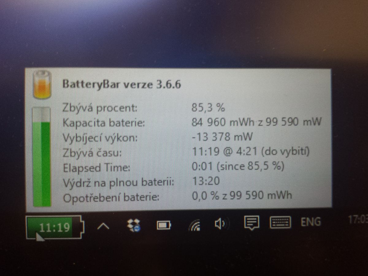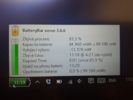 Jediná možná varianta baterie je 8 článková s kapacitou 94Wh. Nepřestává mě fascinovat, jak rychle se vylepšuje efektivita spotřeby energie současných procesorů. Výdrž notebooku je reálně pět až osm hodin, což mi u čtyřjádrového notebooku se 17“ displejem přijde přímo fantastické. Samozřejmě jsou tu velké rozdíly mezi režimy v jakých P70 provozujete a jak efektivně jste schopni přizpůsobit si napájecí profily. Hodnota, o které se tu bavíme, odpovídá mírné zátěži – hlavně prohlížení webu a kancelářská práce.