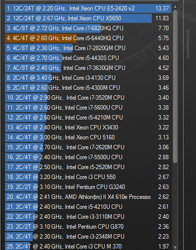 Srdcem notebooku je poměrně neobyčejný procesor Intel i5-6440QM tikající na frekvenci 2,6GHz až 3,5GHz v režimu Turbo. Zajímavým faktem také je, že procesor nepodporuje funkci Hyperthreadig. Po zběžném průzkumy aktuální roadmapy 35W mobilních procesorů za tím vidím jen obchodní rozhodnutí v situaci, kdy je třeba nějak výrazně odlišit čtyřjádrové procesory i7, které mají nepatrně vyšší frekvence, a zároveň podporují technologii Hyperthreading.