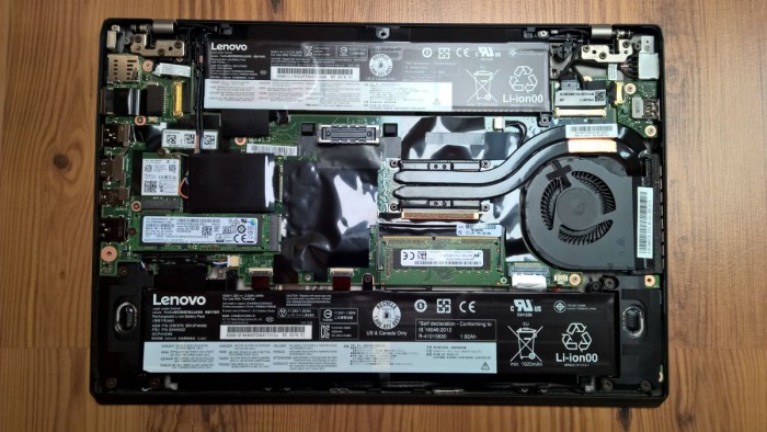 Lenovo si dalo záležet i v několika drobnostech, které potěší každého, kdo chce zařízení čistit či upgradovat – v podstatě celá spodní strana představuje jednolitý kryt, který jde po odšroubování pěti šroubků (po dlouhé době konečně s obojetnými hlavami!) snadno sundat, čímž získáte přístup k vnitřním komponentám i bateriím, aniž byste riskovali rozlámání plastových dílů (ano, mířím na tebe, minulá generace!). Po sejmutí krytu se vám naskytne pohled na všechen hardware, který je 100% přístupný – od chlazení a baterií, přes operační paměť až po M.2 sloty s SSD diskem, Wi-Fi modulem nebo LTE modemem. Zároveň Lenovo zapracovalo na organizaci prostoru „pod kapotou“, a tak jsou nejenom všechny komponenty jasně označené a vymezené, ale i jejich kabeláž (ať už je to obrazový kabel displeje, vedení k reproduktorům nebo antény) je vedená ve žlábcích či plastových úchytech. Tak to má vypadat! Umím si představit, že T460s bude opět poměrně oblíbeným ThinkPadem v servisech.