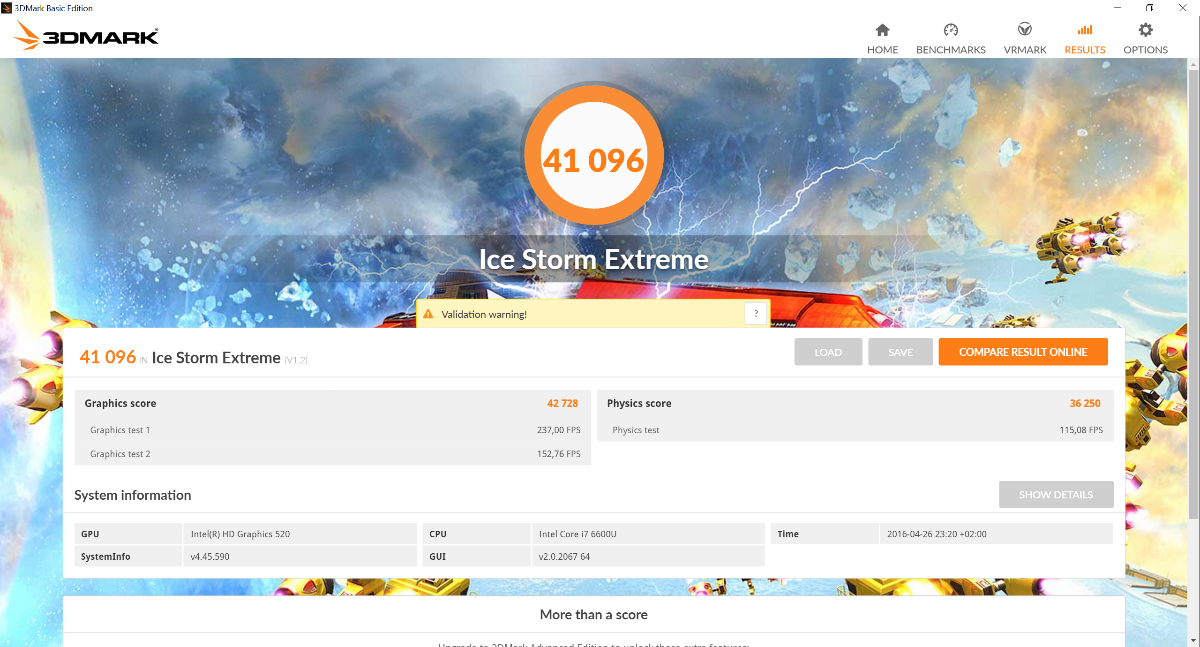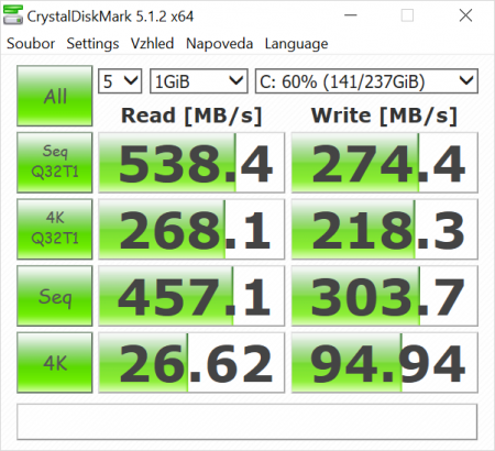 Musím v první řadě říct, že se nejedná o zařízení pro výpočty DNA či simulací procesu obtékání křídla. V mnou testované konfiguraci byl procesor Intel Core i7-6500U. Jedná se o ULV procesor z rodiny SkyLake, disponující grafickou kartou Intel HD 520. AES-NI je samozřejmostí stejně jako AVX, AVX2 a Quick Sync.