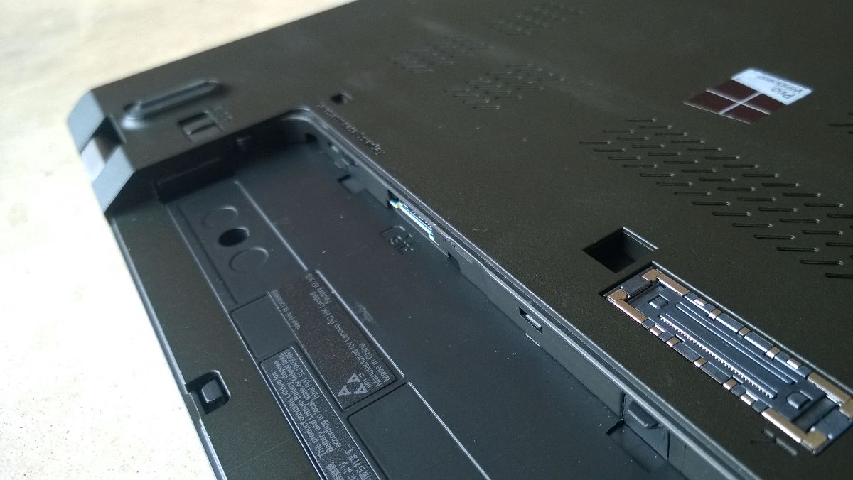 Na levé straně 2x USB 3.0, MiniDP (tohle nechválím), výdech chlazení. Zadní a přední strana nic. Na spodní straně naleznete dokovac konektor. Slot na SIM kartu je pod baterii.