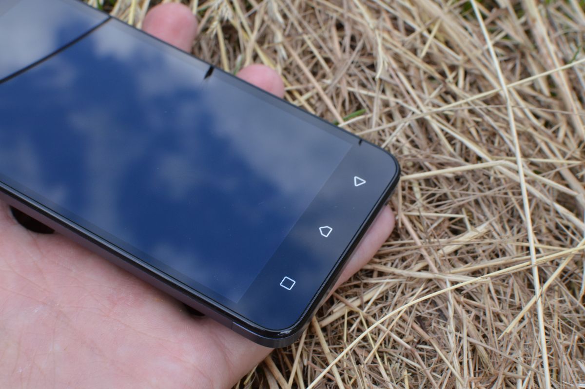 Na čelní straně, pod displejem, se nachází trojice tlačítek, která však nejsou podsvícená. Útěchou může být snad jen to, že vibrují. Nad displejem se pak nachází „selfie“ fotoaparát, mřížka reproduktoru, nepatrné senzory a v neposlední řadě také indikační dioda, která červenou barvou indikuje napájení, zelenou pak upozornění.
