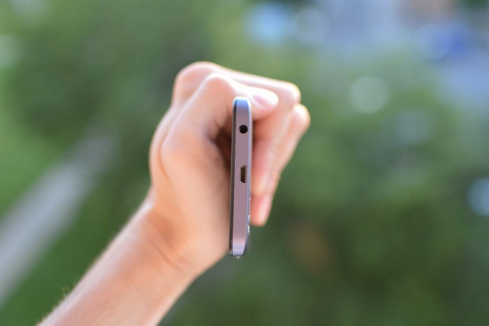 Na vrchní straně se nachází 3,5mm jack a trochu netradičně také microUSB konektor pro připojení nabíječky. Sám toto řešení nemám příliš v lásce a jsem zastánce toho, že konektor pro nabíječku by se měl nacházet na spodní straně telefonu.