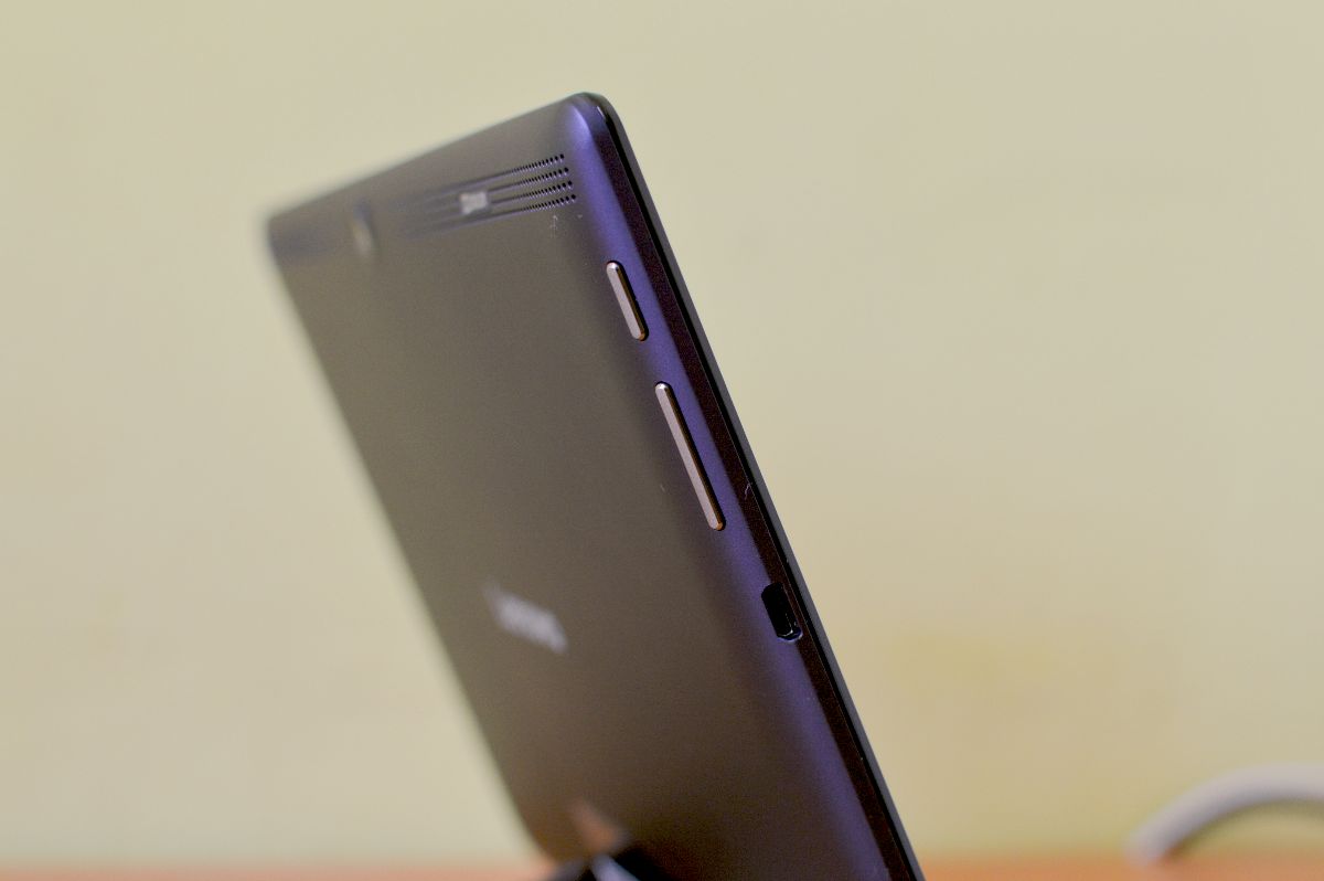 Levá strana nabídne tlačítko pro zapnutí a vypnutí obrazovky, jednolité tlačítko pro úpravu hlasitosti, microUSB konektor a schovanou šachtu pro vložení SIM a paměťové karty. Pravá strana pak disponuje pouze 3,5 mm jack konektorem.