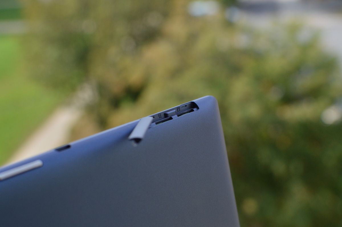 Na první pohled mě tablet ničím nezaujal. Ostatně na přední straně, kde se nachází displej, není co vymýšlet. Displej je ohraničen rámečky, které jsou tak akorát široké, aby se tak velký tablet dal pohodlně držet v ruce. Na horní části se nachází logo výrobce a webkamera.