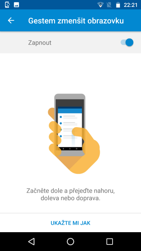 Potřebujete pracovat s telefonem, ale máte volnou pouze jednu ruku? Pohybem od navigační lišty vzhůru dojde ke zmenšení obrazu, takže lze mobil ovládat pohodlněji.