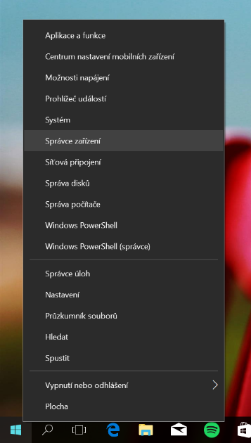 - Pravým tlačítkem myši klikněte na tlačítko start a vyberte Správce zařízení.