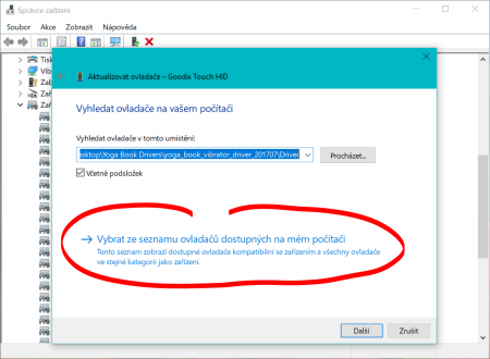Po dlouhém laborování (kterým si prošli také lidé na Lenovo fórech) jsem konečně zjistil, proč se tak děje: Windows si tvrdošíjně prosazují svůj původní, starší ovladač, namísto toho, aby aplikovaly ten nový. No a starý ovladač si s novou aplikací nerozumí. Řešení je proto jednoduché: opět skrze správce zařízení ručně Windows „vnutit“ ovladač nový: