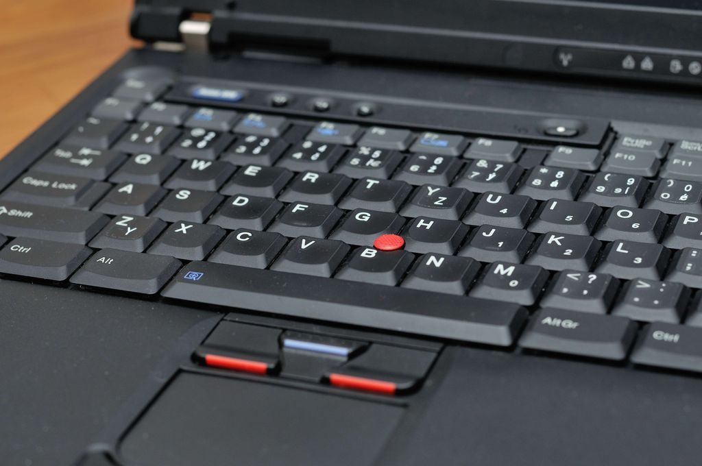 Dostáváme se ke klávesnici, která bývá u čtyřicítkové generace ThinkPadů často vyzdvihována. Pro začátek bych zmínil, že narozdíl od šedesátkové řady nejsou vzájemně zaměnitelné klávesnice mezi 14″ a 15″ modely. Verze pro obě úhlopříčky vyráběli pro IBM celkem tři dodavatelé: NMB, Alps a Chicony.