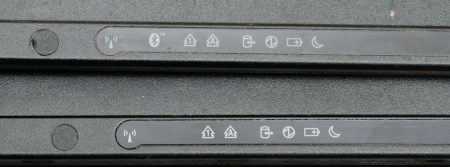 Ještě se vrátíme k Bluetooth. Jeho anténa se nenachází přímo na MDC modulu, ale je vyvedena koaxiálním kabelem do víka displeje, úplně stejně jako v případě wifi. Takové víko displeje má pak zároveň na liště se stavovými diodami jednu navíc, indikující činnost BT. Víko s anténou z mé T40p indikační diodu má, ale to z T42, které rovněž obsahuje anténu, diodu postrádá!