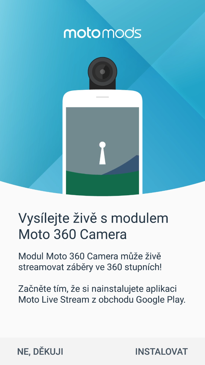 První dva doplňky Moto Mods byly pro vylepšení výstupu z telefonu. Nyní přicházíme k tomu, co nám umožňuje lépe vkládat něco do něj. Konkrétně fotky a to nejen ledajaké. 4k 360° fotky nebo videa jsou zajímavý a docela raritní záležitost, která zaujme asi každého. Hned po prvním odzkoušení člověka zaujme ten zvláštní pocit, že nic neskryjete. Telefon s tímto zajímavým udělátkem zabere opravdu vše, v případě nahrávání videa, se jedná ještě o zajímavější funkci. Nahrávání zvládá i za chůze, protože dokáže vyrovnávat obraz, a vy tak můžete tvořit kvalitní obsah. Již zmíněné rozlišení 4k je pro širokoúhlé fotografie více než dostačující. Větší by nezamrzelo, avšak pořád se pohybujeme v oblasti příslušenství k telefonu, nikoliv u profesionálních fotografických potřeb.