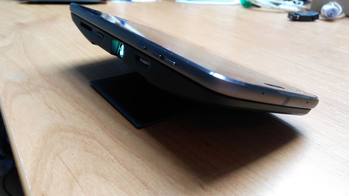 Gamepad má také šikovné řešení pro nabíjení či sluchátka. Jak můžeme vidět, telefon je po aplikaci doslova zapuštěn do Gamepadu. To zajišťuje pohodlné ovládání a držení. Na stranu druhou je tu však zakrytí USB konektoru pro nabíjení a sousedícího 3,5mm jacku. Hraní patří mezi tu náročnější část aplikací pro baterku, tak by se to mohlo jevit jako nevhodné řešení. MotoMod však nabízí elegantní řešení v podobě umístění obou zmíněných konektorů na spodní část gamepadu. Takže v nemusíte v zápalu hry ukončit rozjetou misi z důvodu vybité baterie nebo nemusíte být ošizeni o zvukovou kulisu hry ve svých oblíbených sluchátkách.