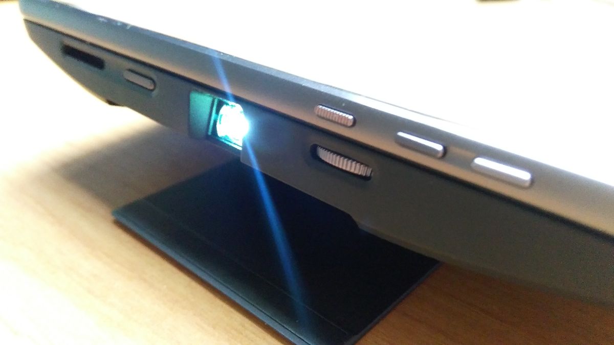 Dostáváme se k dalšímu a velmi zajímavému a praktickému doplňku Moto Mods. Jedná se přenosný projektor. I tady se jedná o naprosto jasné použití. Avšak tady se jedná o skvělé provedení přenosného projektoru. Během půlminuty po rozhodnutí něco promítnout, je možné už jen dolaďovat zaostření projektoru a promítat obrázky či videa. Žádné složité tahání kabelů a zapojování počítače, hledání zásuvky. Jen se přicvakne magneticky projektor, zmáčkne tlačítko, položí se mobil na stůl, zaostří čočka a je to. Rychlé, účinné, jednoduché. Projektor promítá to, co máte na obrazovce telefonu.
