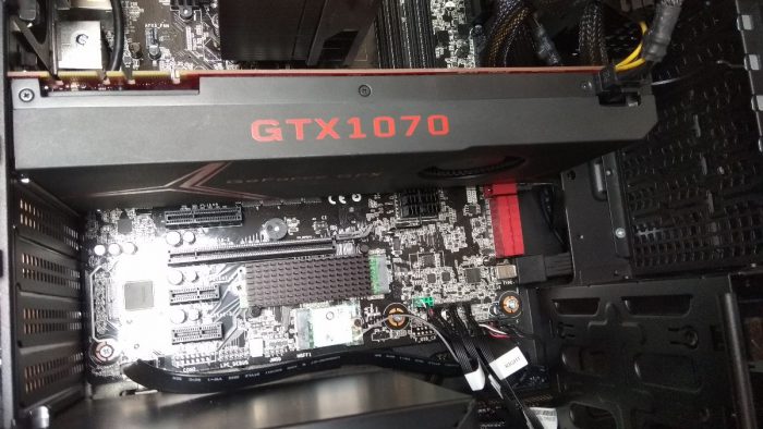 Gigantická GTX 1070 je v obrovské case jak ztracená. Klidně jí můžete pořídit ještě jednu sestřičku.