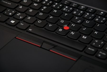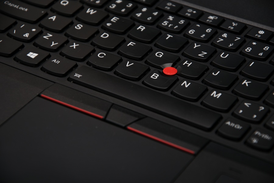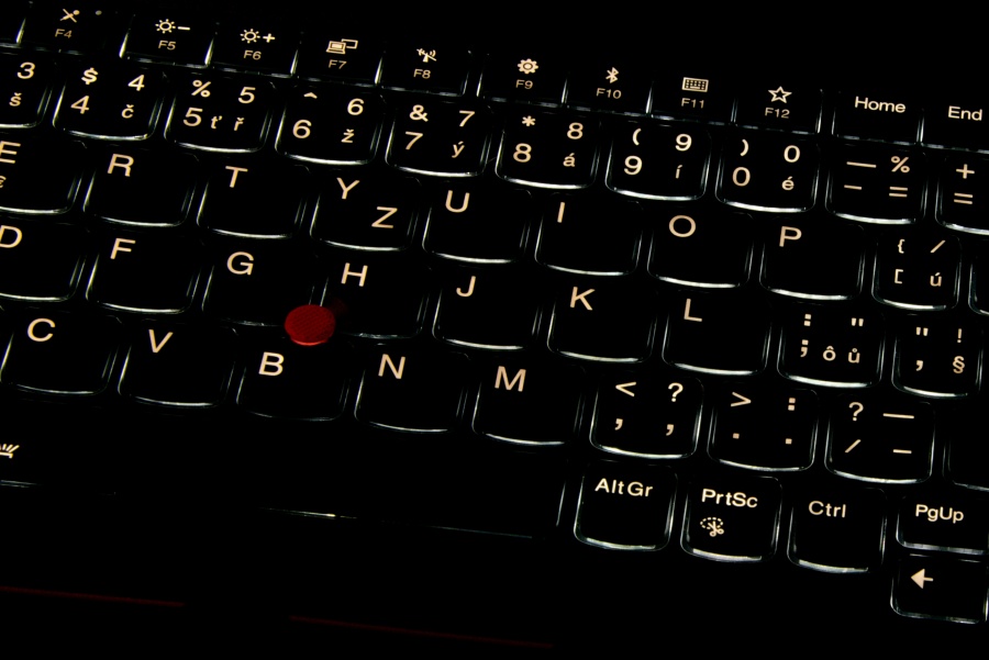 Klávesnice má klasické Thinkpad rozložení včetně numerického bloku. Uprostřed klávesnice se nachází standardní červený ovladač trackpoint. Směrové šipky na klávesnici jsou osazeny níže což je výborné na hmatovou orientaci při pohybu prstů na klávesnici. Celá klávesnice je podsvícená ve dvou úrovních, světlo prosvítá skrze písmenka a jde vidět i při pohledu z boční strany kláves. Trackpoint má pod klávesnicí trojici tlačítek, která navazují na touchpad. Touchpad reaguje perfektně a má příjemný povrch takže se s ním pracuje velice dobře. Stisk kláves není nijak vysoký a nijak hlučný, celkový dojem při práci na klávesnici hodnotím jako výborný.