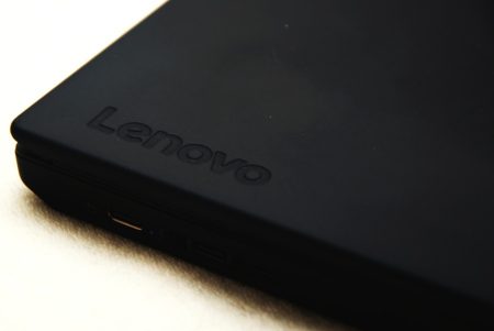 Na první pohled notebook nevyčnívá z řad černých Thinkpad notebooků. Vše se ale změní při prvním kontaktu po otevření. Víko notebooku má speciální povrchovou úpravu, díky které okamžitě získáte pocit, že držíte něco výjimečného. Víko je sice tenké, ale natolik pevné, že se nijak dramaticky nevlní, neohýbá a je vidět jeho velice kvalitní zpracování. Na horním víku také nalezneme dvě loga, první je klasické logo Thinkpad s diodou signalizující zapnutý notebook, které je krásně zapuštěné, takže nehrozí jeho poškrábání nebo sloupnutí. V protilehlém rohu je i logo Lenovo, které je zde vytvořeno plastickým prohloubením písmen, což také působí velice vkusně a neruší to nijak vzhled notebooku. Navíc vypadá opravdu povedeně. Zadní straně vévodí několik skupin větracích otvorů pro dobrý odvod vzduchu z chladícího systému . Dále najdeme ve spodní čísti také jednu ze dvou baterií.