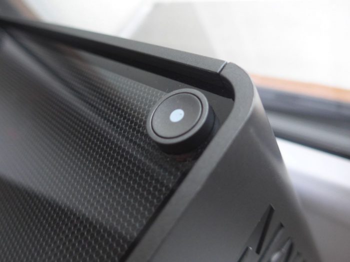 Přední strana je velice jednoduchá, i když si nejsem jistý, jestli je správné říci „designově čistá“. Logo Y Legion (takový ten jakoby Mercedes) je podsvícené, jinak přitáhnou pozornost hlavně otvory větrání, které samy o sobě nemají žádnou funkci, za nimi je ještě jemná mřížka a prachový filtr. Pokud byste zepředu hledali konektory, našli byste je vlevo dole a jsou velice snadno přehlédnutelné. Konkrétně jde 3,5mm jack konektory pro připojení sluchátek a dva USB konektory.