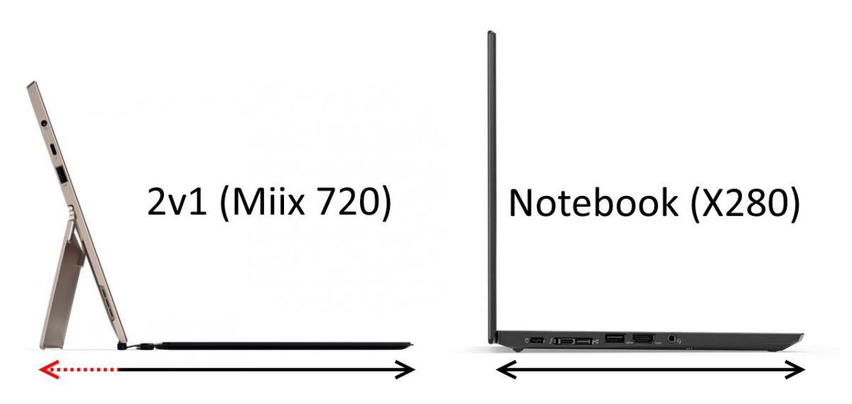 Nejvíc mám nacestováno s ThinkPadem X31, který byl skladnější než dnešní X verze s nesmyslným 16:9 displejem a vydržel naprosto všechno. Koncept 2v1 s odpojitelnou klávesnicí mi právě kvůli větším rozměrům potřebným pro stojánek a celkové „nepevnosti“ nepřijde pro tento účel praktický, je lepší když je klávesnice pevně spojena. Tady by byl rozhodně zajímavý Lenovo Yoga Book C930, ale ne za tu nesmyslnou cenu v ČR.