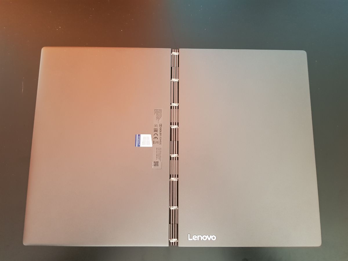 V této cenové kategorii (cca 38.990Kč s DPH) člověk očekává špičkové zpracování, a to od Lenova dostane. Šasi je pevné a nikde nenajdete náznak špatného zpracování. Tělo je díky elektronické klávesnici nezvykle tenké (9.9mm) a díky menší úhlopříčce 10.8″ i malé (179.4mm x 260.4mm). Nemluvě o hmotnosti, která je hluboko pod 1 Kg, přesněji 778 g. Proto máte stále dojem, že se jedná spíše o tablet, nežli o plnohodnotný notebook. Tělo je tvořeno kombinací hliníku a hořčíku. Díky použití jen 7w CPU se také obešel o jakékoliv aktivní chlazení a tím pádem nemá žádné ventilační otvory, což umocňuje celistvost zařízení. Panty mezi oběma displeji jsou po celé šířce stroje a jsou designově krásně provedeny ve tvaru tří kovových trubiček pospojovanými kovovými spojkami. Díky tomu lze dobře překlápět displej do tabletového režimu. Trochu problém ale dělá otevíraní ze zavřeného stavu. Lenovo zde sice má vychytávku ve formě poklepání na víko, kdy povolí elektromagnet a víko odskočí, ale to mi fungovalo někdy až na několikátý pokus a manuální otevření díky absenci jakéhokoli prolisu je také náročnější. Do designu musím zahrnout i dotykové pero, které je součástí již základního balení. To nemá v těle zařízení své místo na schování, jak tomu bývá třeba u dotykových ThinkPadů, ale na tělo se přichycuje magnetem. V rámci častého přenášení tudíž bude náchylnější na ztrátu. Nutno ale dodat že bych při daných rozměrech nedokázal najít místo kam jej schovat.