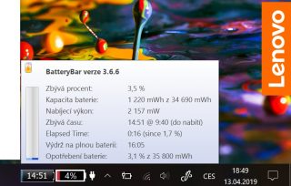 Zvláštní kapitolou je baterie, potažmo její dobíjení. Zdroj je více podobný na mobilní přístroj, než na notebook a měl jsem velký problém jej dobíjet solidní rychlostí. Kapacita baterie je 36Wh a výdrž při běžném zatížení je cca 8h. Problém nastává u dobíjení z nízkých procent, kdy se sice ze začátku dobíjí nabíjecím výkonem kolem 22000 mW, ale po chvílí spadne na 2200mW což je jen 10% možného dobíjecího proudu. Znamená to dobití do plna třeba až za 15h času. Nevím, zdali to byl problém jen mého kusu, nebo daného nabíjecího zdroje, ale šílenější časy jsem zatím neviděl. Při vypnutém stavu a jen dobíjením to bylo o něco lepší, takže roli mohou hrát i teploty baterie v tenkém těle bez ventilace.