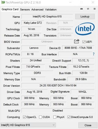 Do výkonu musíme zahrnout integrované grafické jádro Intelu a to HD Graphics 615. Jako u všech Intel integrovaných VGA platí, že na nové tituly her spíše zapomeňte. Staré, nebo nenáročné hry jsou ale v pořádku. S multimédii nemá také žádné problémy.