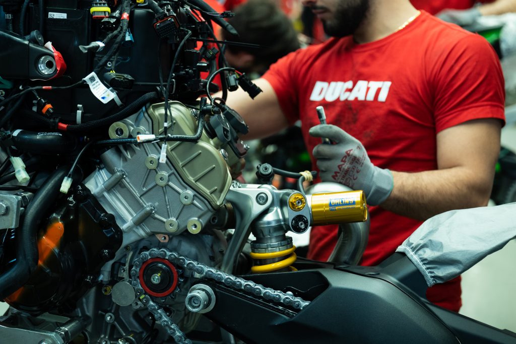 Vezměme si Panigale V4 R. Stroj pro běžné zákazníky, jehož specifikace jsou přizpůsobeny bezpečnostním předpisům veřejných komunikací, disponuje 221 koňskými silami. Stejně jako závodní stroj Desmosedici i Panigale disponuje výfuky značky Akrapovič a rychlost mu dodává čtyřválcový motor. A co je nejdůležitější, motocykl je bezpečný. Při takové koňské síle jsou kola udržována na zemi díky trakčnímu systému otestovanému závodníky a řazení má na starosti systém řazení Ducati, který umožňuje velké zrychlení, aniž by se jezdec musel zaobírat spojkou.