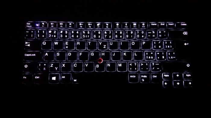 Klávesnice je stejná, jako u ostatních ThinkPadů – to znamená vyšší zdvih, prohozené Ctrl a FN (které si lze softwarově přehodit), a mně se na této klávesnici píše prostě skvěle. Nechybí dvouúrovňové bílé podsvícení, které je krásně rovnoměrné.