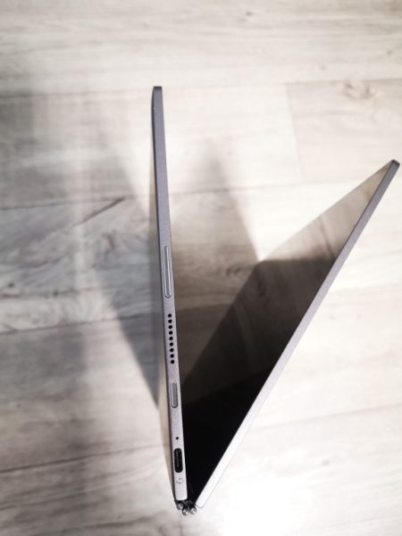 Na notebooku se nachází pouze dva porty USB-3.1 (Gen 1) typu C, což může být pro někoho limitující, ale dá se to řešit rozšířením různými replikátory nebo rozšiřujícími převodníky. Na levé straně se nachází USB-C port a hned vedle něj slot na SD kartu až do velikosti 512 GB a SIM podporující LTE. Hned vedle slotu jsou výdechy reproduktorů. Z pravé strany máme notebook osazen pouze USB-C který dle piktogramu může sloužit k připojení náhlavní soupravy s mikrofonem. Dále se zde nachází tlačítko na zapnutí počítače a tlačítko pro regulaci zvuku. Mezi těmito tlačítky je opět výdech repoduktorku. Jinak na tomto notebooku není žádný jiný vstup. Pro připojení dalších periférií je proto nutností pořízení nějakého replikátoru nebo jen rozšiřujících portů, vše se pak připojí přes USB-C port. Při pořizování je důležité myslet na to, že by bylo dobré přes tuto krabičku zároveň i nabíjet a tím pádem všechno připojit přes jeden kablík. Osobně toto používám na svém pracovním notebooku a je to velmi příjemná vychytávka.