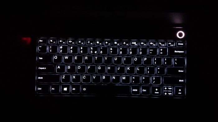 Klávesnici nechybělo bílé, decentní podsvícení, které bylo rovnoměrné. Škoda jen, že první poloha byla tak slabá, že si v kombinaci s displejem, který má docela vysoký minimální jas, nedovedu představit ji využívat (ačkoliv toto může být problém pouze testovaného kusu, který nepochází z české distribuce a nejedná se o zcela finální či sériový výrobek). Dobré ale bylo to, že při zhasnutí displeje podsvícení nezhaslo.