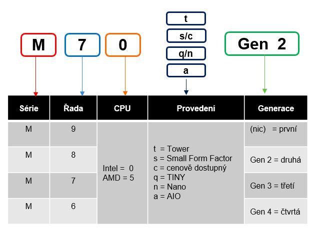 Příkladem by mohl být např. ThinkCentre M70t Gen 2, což by byl klasický tower s procesorem Intel v druhé generaci.