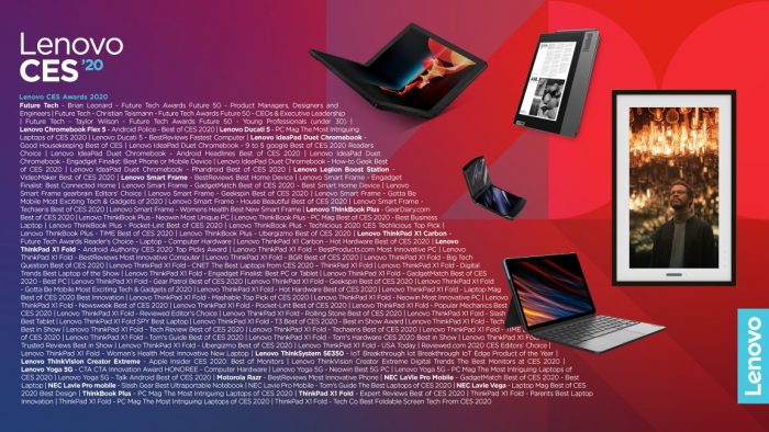 I letos vyslalo Lenovo na tuto akci své zástupce a odvezlo mnoho cen. Počítadlo získaných cen se zastavilo na těžko uvěřitelném čísle 89, což je pro Lenovo samozřejmě velký úspěch. Není proč se zdržovat, zde je seznam oceněných produktů a výpis získaných cen.