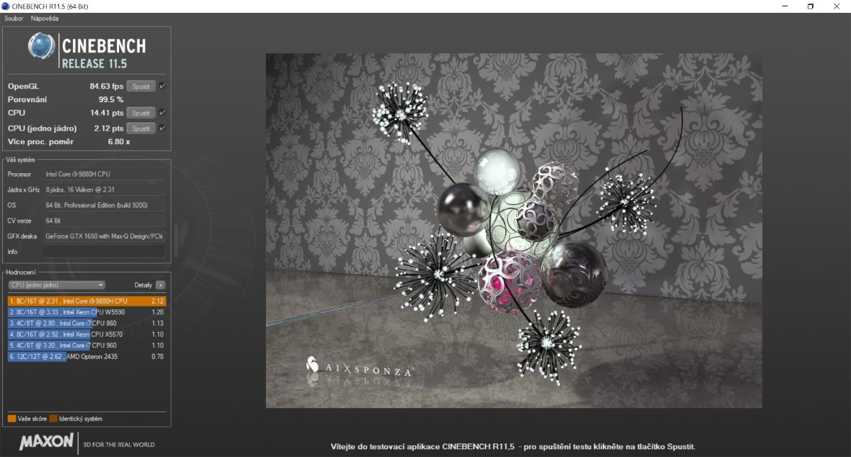 Co se výkonu procesoru týče, v referenčních testech mu dost šlapou na paty letošní konkurenti z tábora AMD. Jak ukazují recenze IdeaPadu S540 13 či Yoga Slim 7 14, konkurenční AMD Ryzen 7 4800H je testovanému zařízení zcela rovnocenným soupeřem, o srovnání s nepoměrně slabšími nízkonapěťovými procesory nemůže být vůbec řeč. Pokud tedy nepatříte mezi die hard zastánce jednoho či druhého výrobce, výkonem procesoru v jedno či vícevláknových aplikacích není modrá samolepka „Core i9“ náznakem něčeho, co by mělo AMD trhat na kousky. Ve prospěch procesorů Intel ovšem zcela jasně mluví podpora rozhraní Thunderbolt 3, což je něco, co u notebooků s procesory AMD (zatím?) chybí. Vzhledem k značnému příplatku za konfigurace s procesory Intel Core i9 bych tak osobně spíše volil spíše nižší varianty s Core i5 či Core i7, jejichž výkon se v plné dlouhodobé zátěži zas tolik lišit nebude (o to větší bude rozdíl v ceně).