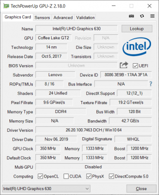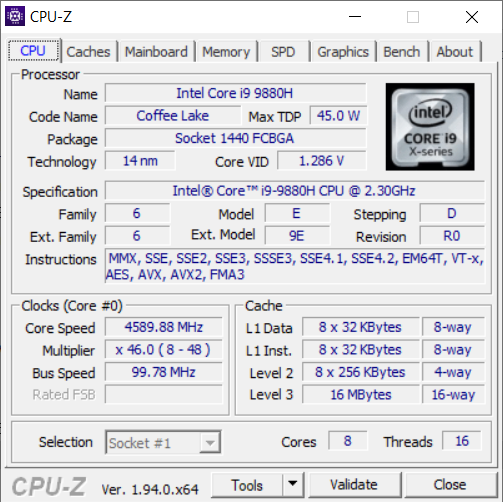 Pod kapotou Lenovo Yoga S740-15IRH se nachází slušná hardwarová výbava, která bohatě dostačuje na práci během pracovního dne, tak na zábavu během volného času. Základem testované konfigurace je osmijádrový (16vláknový) procesor Intel Core i9-9880H, spadající do 9. generace s označením Coffee Lake a tvořící ten nejsilnější čip, který lze v tomto notebooku mít. Na trhu se reálně objevuje orientačně od poloviny minulého roku, jde tedy stále o aktuální čip, který co do výkonu má rozhodně co nabídnout. Základní takt má hodnotu 2,3 GHz, v režimu Turbo Boost pak až 4,8 GHz. Intel Smart Cache má slušnou hodnotu 16 MB. Procesor je vyrobený starším 14nm výrobním procesem, výkon (TDP) pak dosahuje až na 45 W. Procesor doplňuje 16 GB paměti DDR4-2666 MHz ve dvou slotech a režimu Dual Channel. To je zároveň nejvyšší kapacita, více paměti RAM do notebooku nedostanete.
