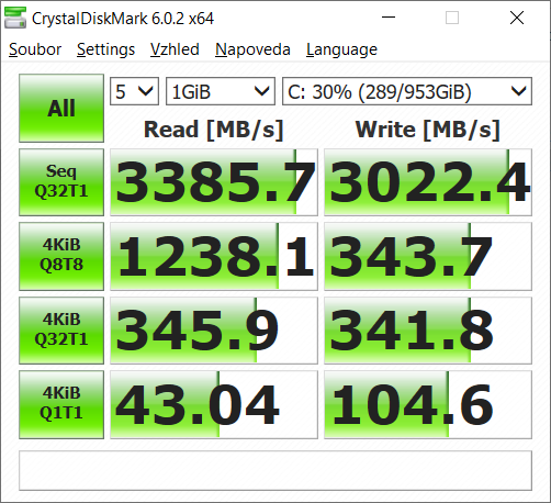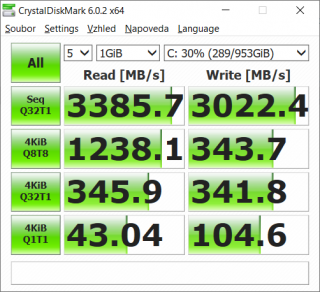 Pro data je připravený M.2 2280 NVMe SSD disk s kapacitou 1 TB (Samsung PM981a). Jde o výrobci oblíbený high-end SSD disk pro dražší zařízení, se kterým se setkáváme napříč consumer i pracovními notebooky. V práci ani při kreativní tvorbě vás brzdit nebude (alespoň v případě testované 1TB varianty).