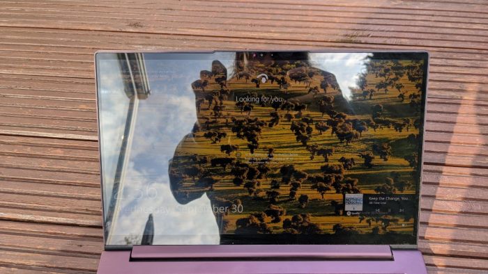 Testovaná konfigurace disponovala lesklým 14“ IPS displejem s podporou HDR. Pozorovací úhly panelu byly dobré, ale mně osobně chyběla antireflexní povrchová úprava, kterou nalezneme například u řady pracovních notebooků řady ThinkPad. Stíny na obrazovce byly rušivým elementem. Určitě si říkáte, že při vyšším jasu bych si žádných odlesků nevšiml. Máte pravdu, nicméně zde nastává problém – panel neměl nijak oslnivý maximální ani minimální jas. Při práci v umělém osvětlení jsem se běžně pohyboval těsně pod maximem (80–95 %), což jsou poměrně tristní hodnoty. Při práci venku nebylo na displeji vidět prakticky vůbec nic. Na práci s nasazenými slunečními brýlemi rovnou zapomeňte, v tu chvíli nemáte šanci na displeji cokoliv vidět.