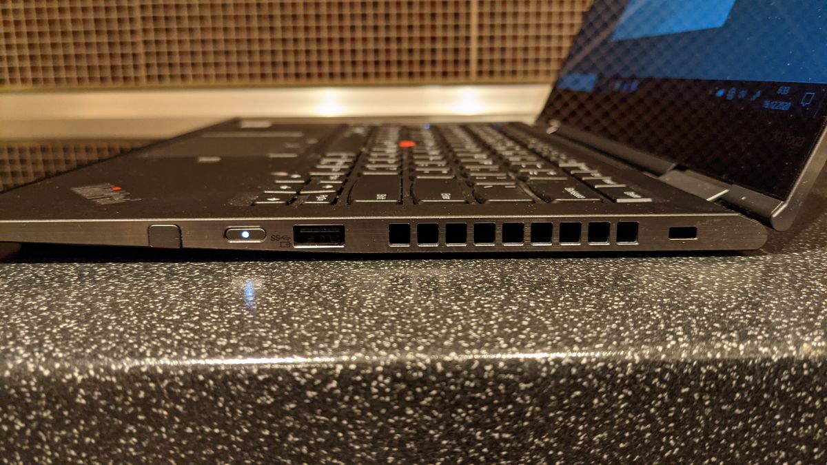 Na straně pravé nalezneme slot pro zámek Kensington, výdech teplého vzduchu, další USB-A 3.1, napájecí tlačítko a integrované pero.